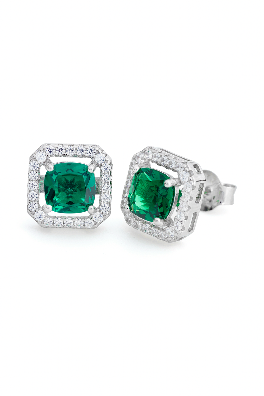 Set halo esmeralda cuadrada. - Plateado / Esmeralda